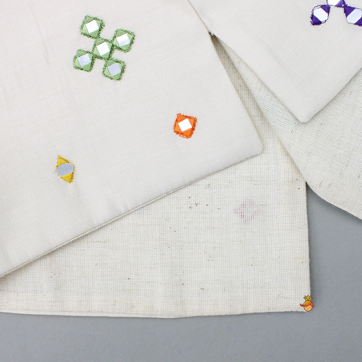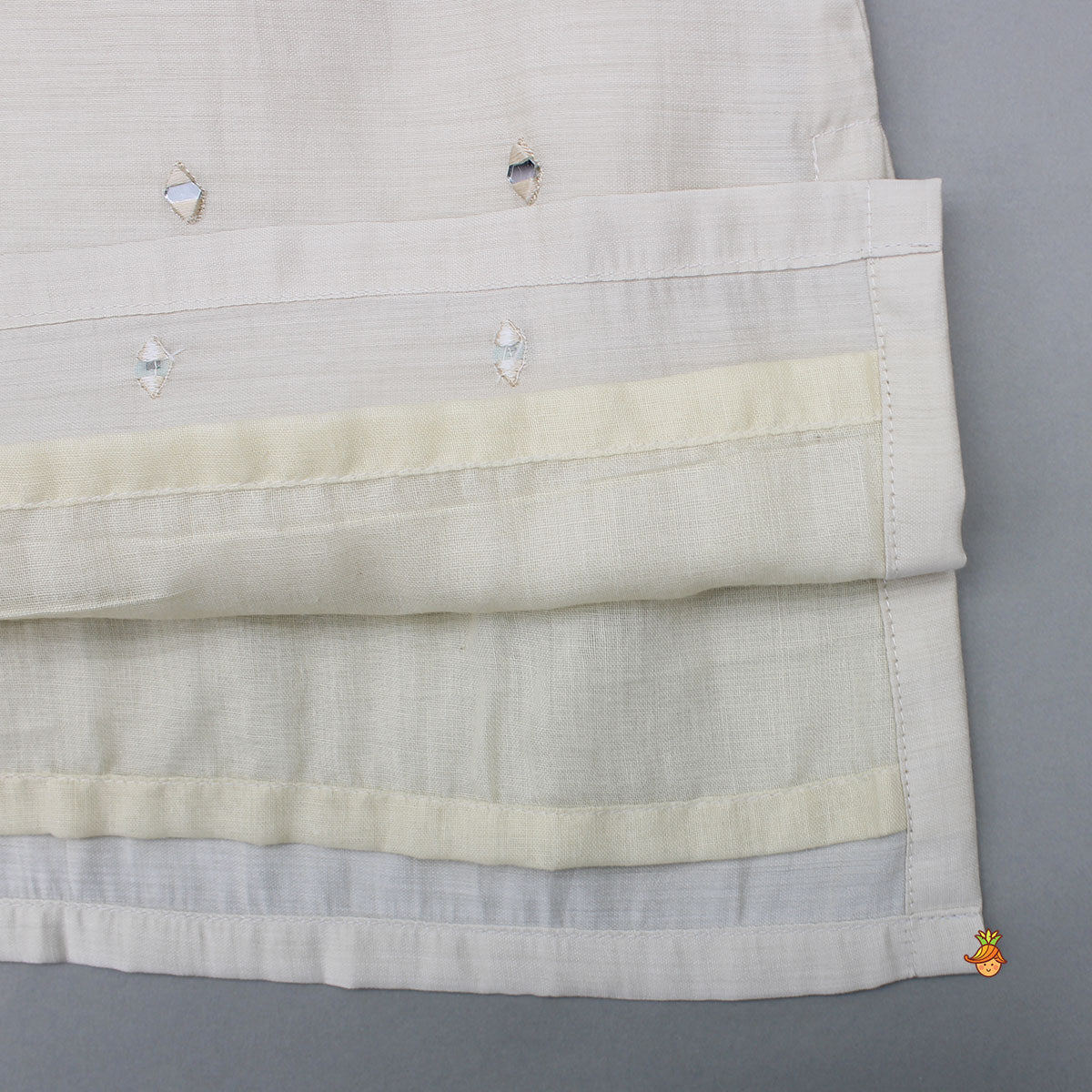 • Full sleeves kurta with mirror and thread hand embroidery work and cowrie shell detailing on placket