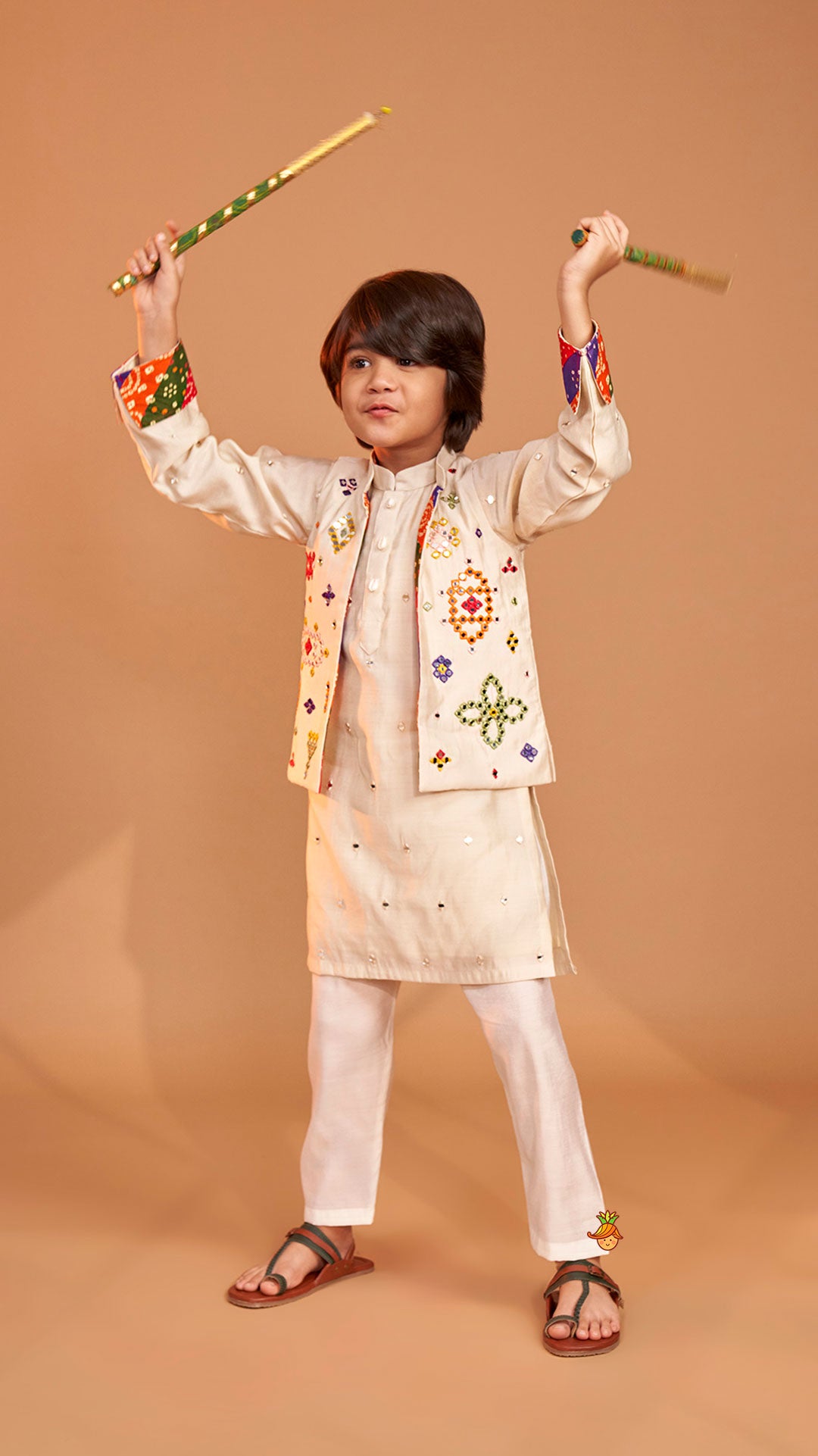 Mirror Embroidered Bandhej Detailed Kurta With Front Open Mirror Work Jacket And Pyjama