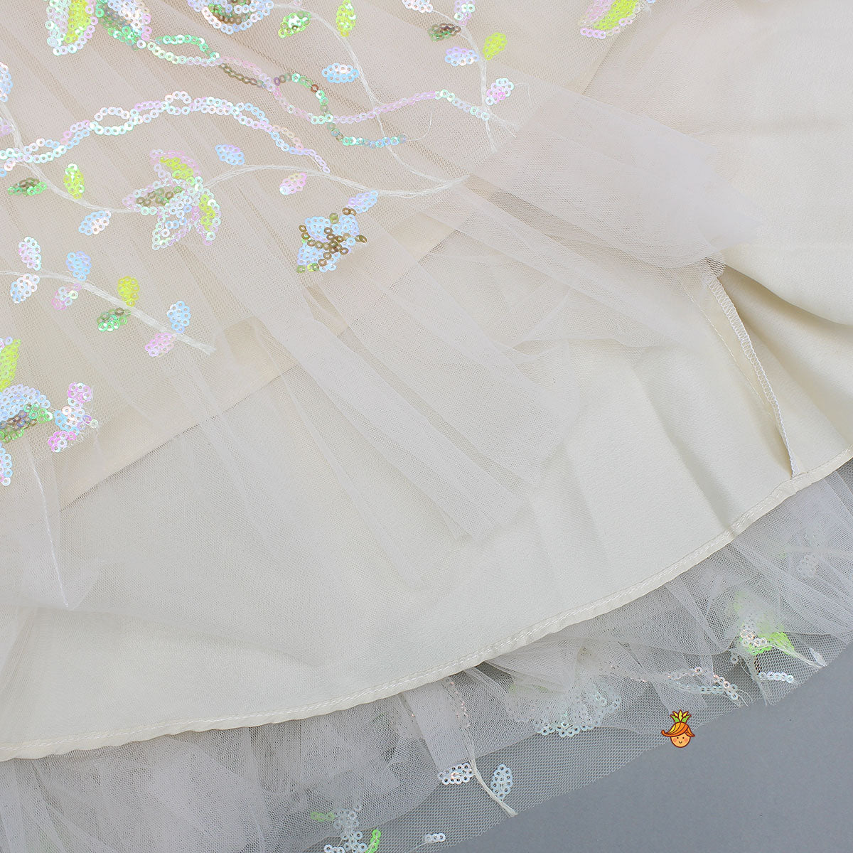 Spaghetti Straps Beige Top And Net Embroidered Lehenga With Dual Tone Stylish Dupatta