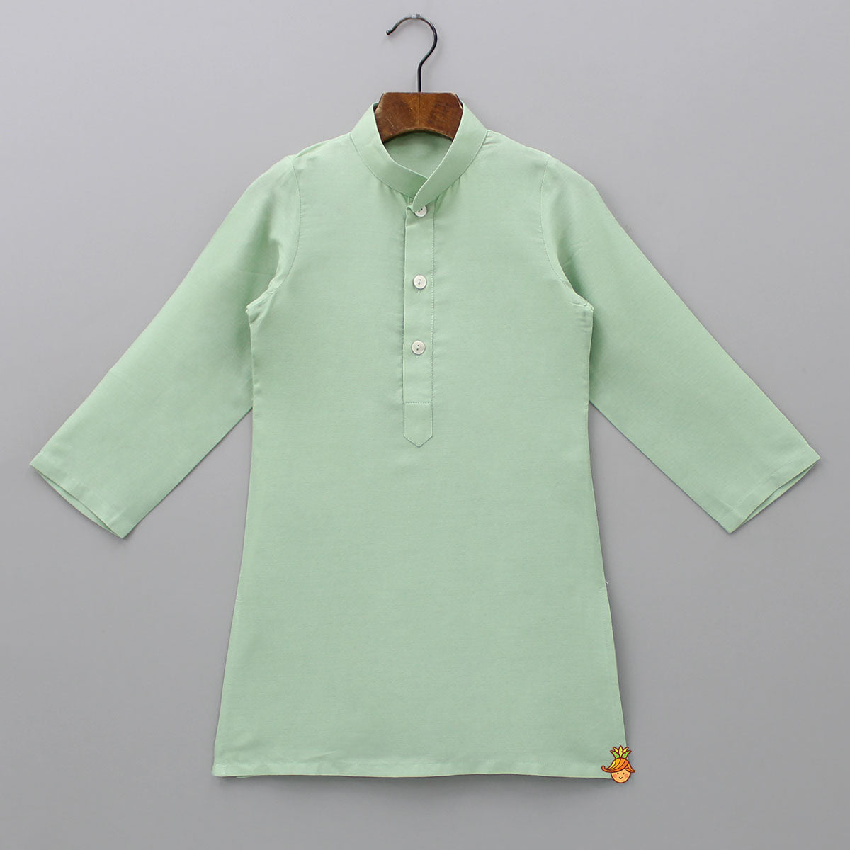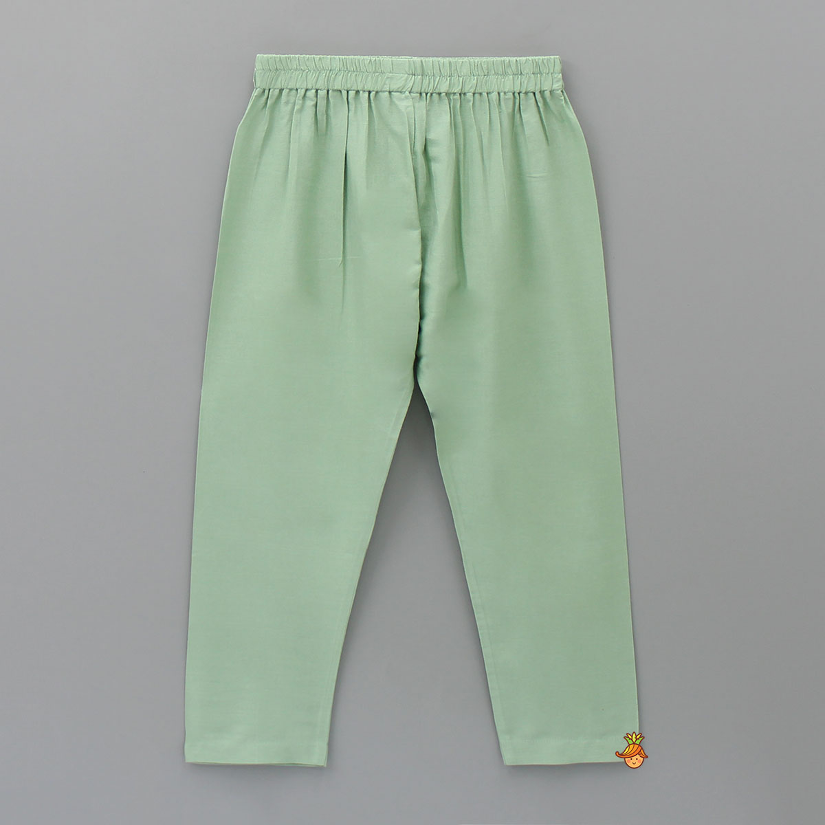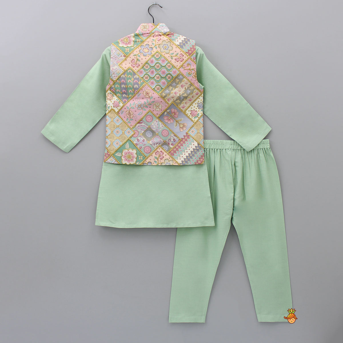 Sage Green Kurta With Cotton Silk Embroidered Jacket And Pyjama