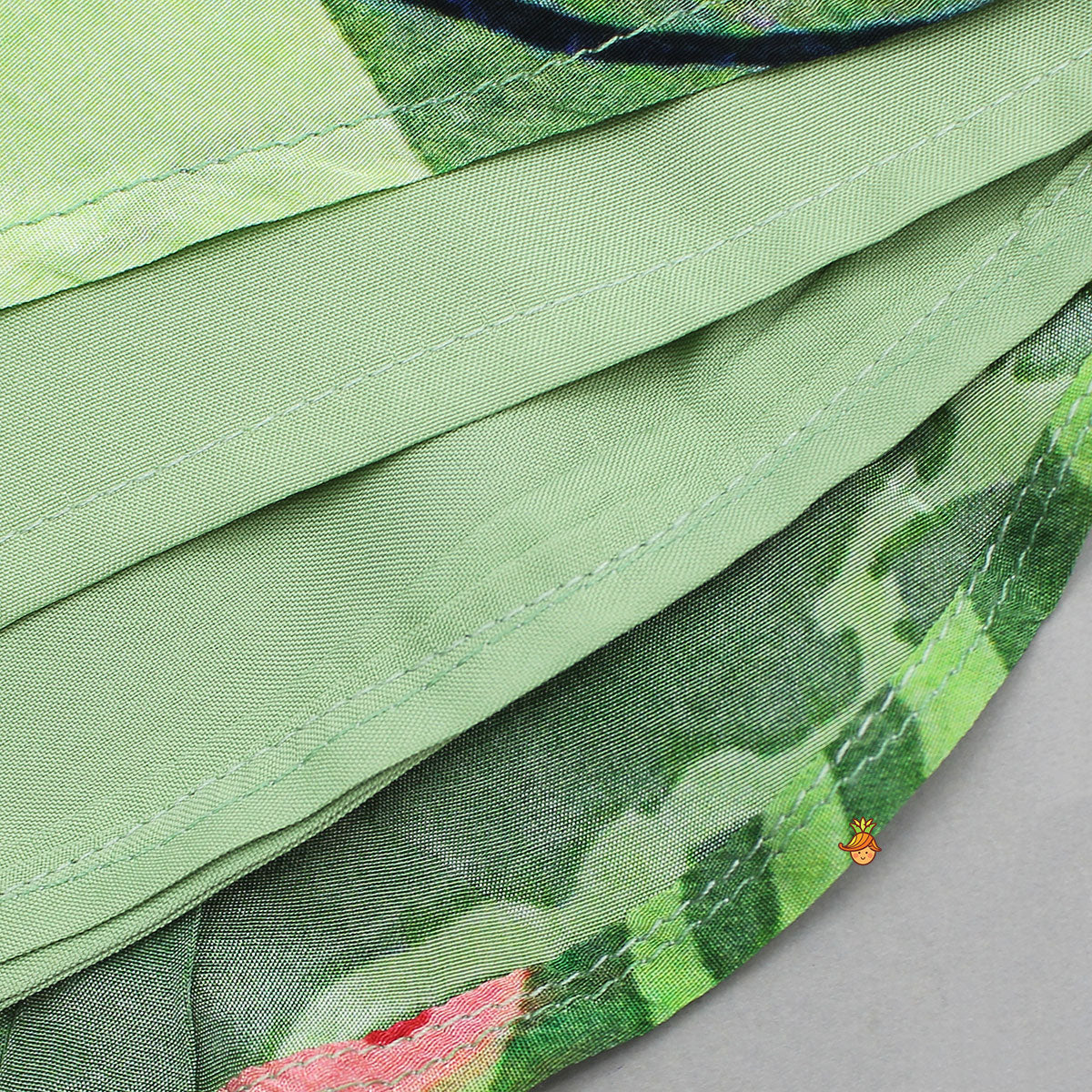 Exquisite One Shoulder Multicolour Printed Dress With Heart Embroidered Belt